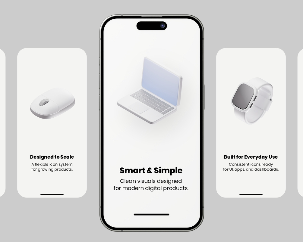 This pack focuses on essential tech devices commonly used in product interfaces, making it perfect for designers who need consistent and ready-to-use 3D icons.