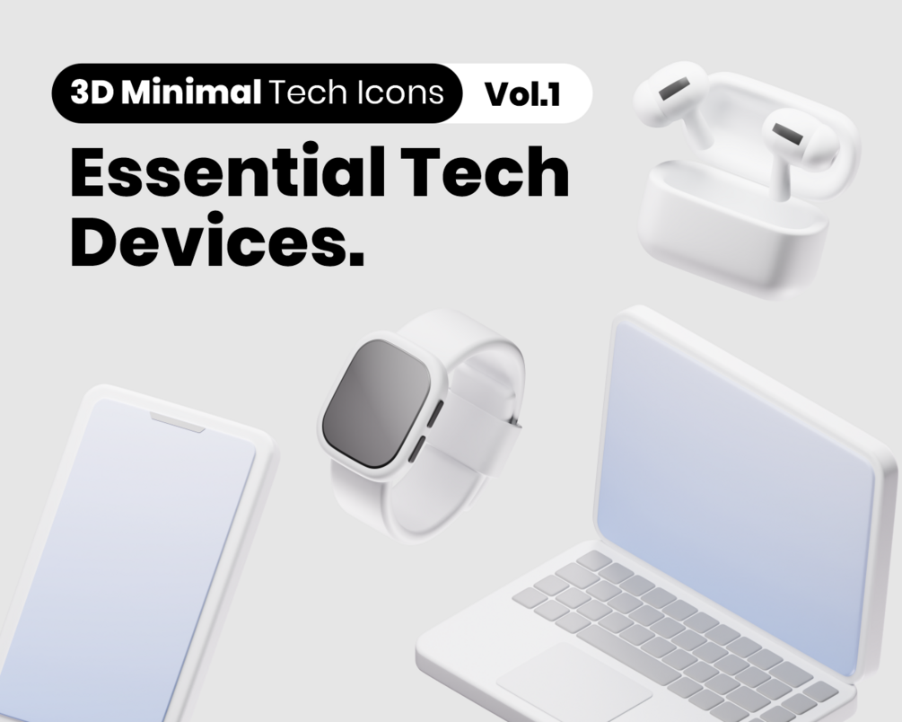 3D Minimal Tech Icons - Vol.1: Essential Tech Devices