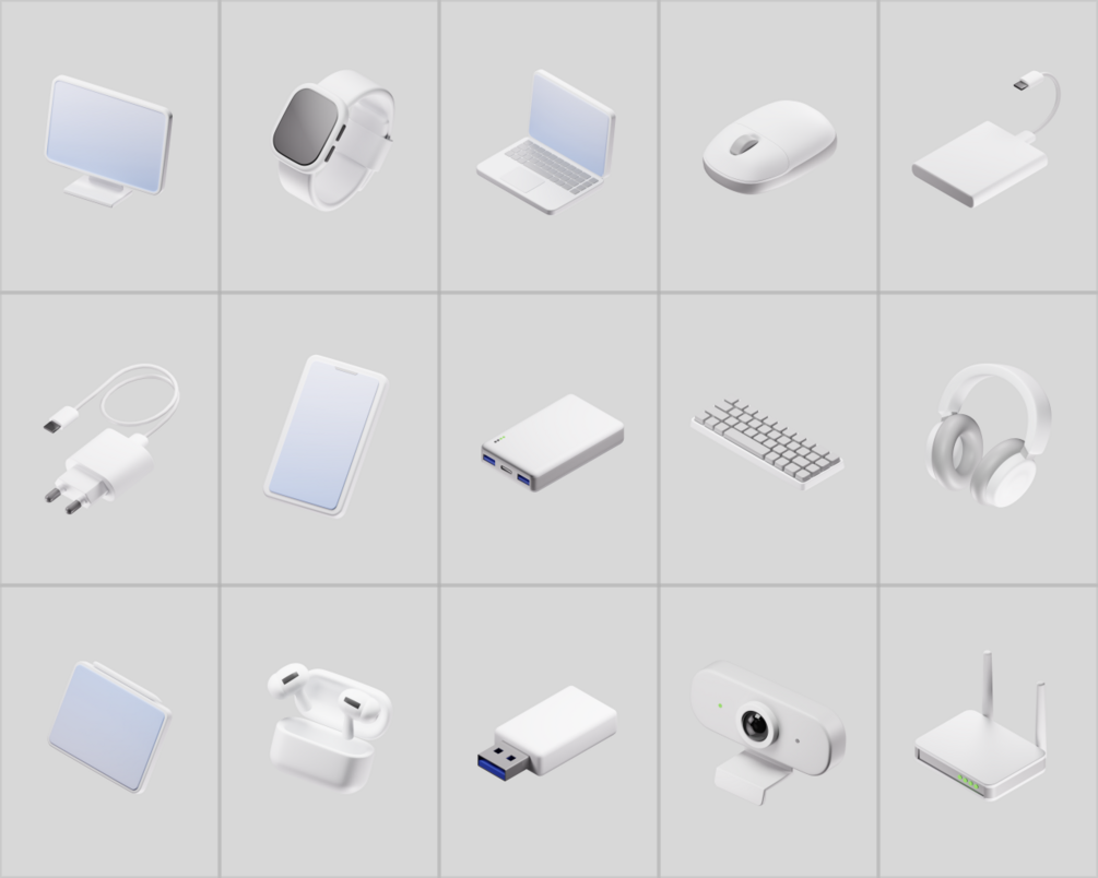 • 15 minimal 3D tech device icons