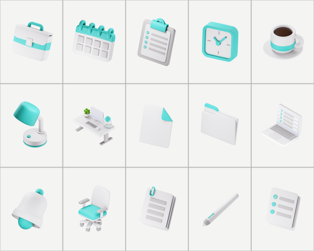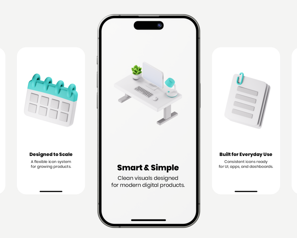 This pack focuses on Office & Productivity Tech commonly used in product interfaces, making it perfect for designers who need consistent and ready-to-use 3D icons.