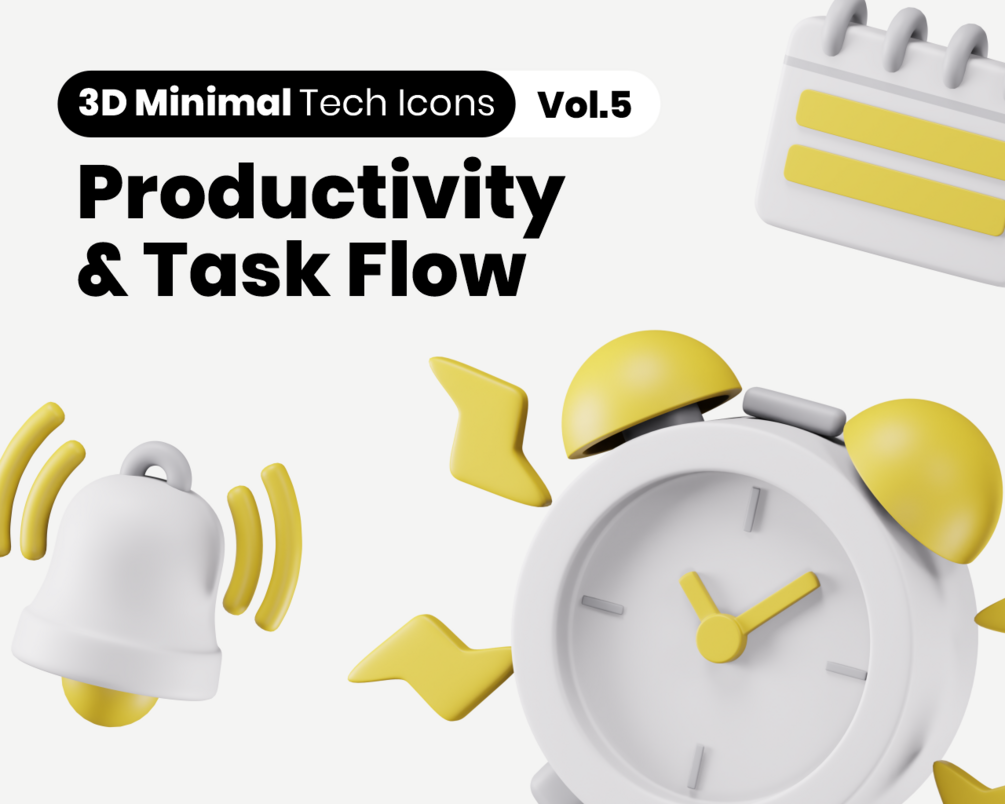 3D Minimal Tech Icons - Vol.5: Productivity & Task Flow
