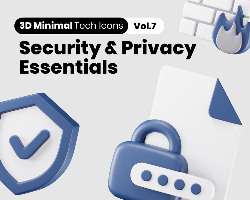3D Minimal Tech Icons - Vol.7: Security & Privacy Essentials