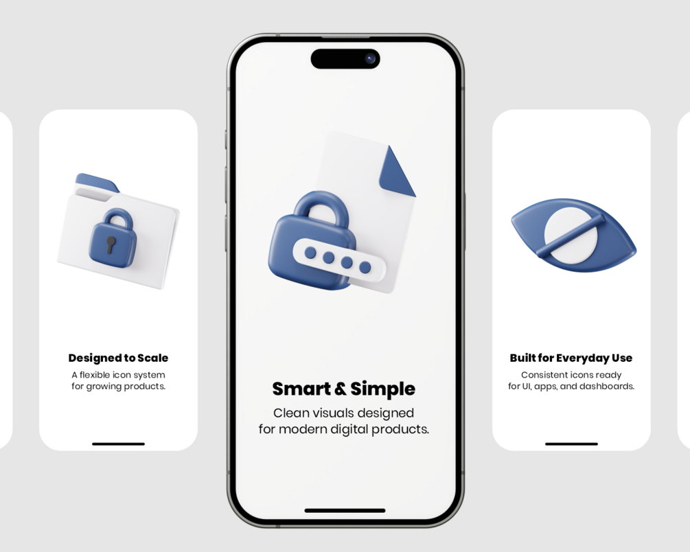 This pack focuses on Security & Privacy Essentials commonly used in product interfaces, making it perfect for designers who need consistent and ready-to-use 3D icons.